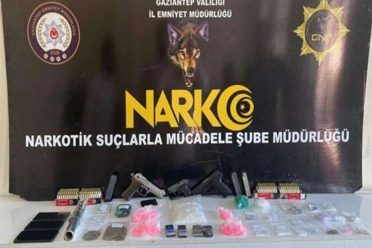 Gaziantep’te son bir hafta içerisinde yapılan narkotik operasyonlarında 26 kilo 102 gram metamfetamin ve 1 kilo 13 gram esrar ile çeşitli miktarlarda diğer uyuşturucu maddeler ele geçirildi. Operasyonlar sonucunda 419 şüpheli hakkında yasal işlem yapılırken, 22 şüpheli tutuklanarak cezaevine gönderildi. Gaziantep Emniyet Müdürlüğü’ne bağlı Narkotik Suçlarla Mücadele Şube Müdürlüğü ekipleri tarafından son bir hafta içerisinde uyuşturucu tacirlerine yönelik çok sayıda operasyon yapıldı. Operasyonlar sırasında baskın yapılan adreslerdeki aramalarda 26 kilo 102 gram metamfetamin, 1 kilo 13 gram esrar, 502 adet uyuşturucu hap, 86 gram bonzai, 69 gram eroin, 6 adet hassas terazi ve 4 adet tabanca ele geçirildi. Operasyonlar sonucunda 419 şüpheli hakkında yasal işlem yapılırken, 22 şüpheli tutuklanarak cezaevine gönderildi. Toplam 397 şüpheli şahıs ise serbest bırakıldı.