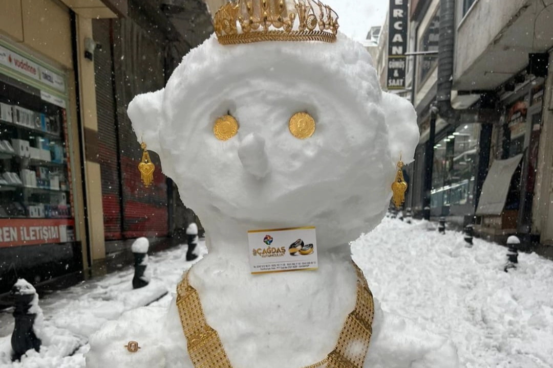 Nizip ilçesinde ise bir kuyumcu, kar yağışı nedeniyle müşteri gelmeyince iş yerinin önüne yaptığı kardan gelini altınlarla süsledi. Boynuna bilezikler ve kolyeler takılan kardan gelin vatandaşların ilgisini çekerken ortaya renkli görüntüler çıktı.