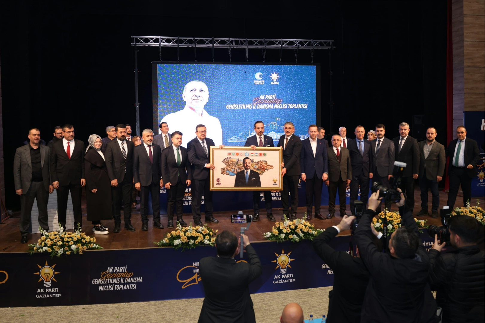 Gaziantep Büyükşehir Belediyesi Şehir Tiyatrosu Onat Kutlar Salonu’nda düzenlenen toplantıya; AK Parti Gaziantep İl Başkanı Fatih Muhaddis Fedaioğlu, Gaziantep Büyükşehir Belediye Başkanı Fatma Şahin, Şahinbey Belediye Başkanı Mehmet Tahmazoğlu, Şehitkamil Belediye Başkanı Umut Yılmaz, Milletvekilleri Bünyamin Bozgeyik, Mehmet Eyup Özkeçeci ve Mesut Bozatlı, ilçe belediye başkanları, İl Kadın Kolları Başkanı Dilan Ensari Şahin, İl Gençlik Kolları Teşkilat Başkanı Ömer Faruk Eryılmaz ile üç kademe teşkilat mensupları katıldı.