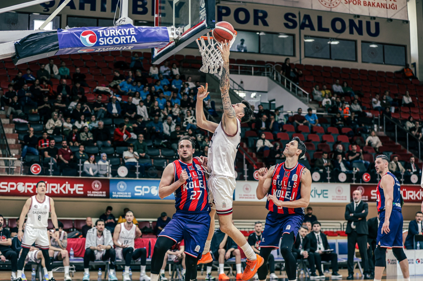 Şahinbey Spor Salonu’nda oynanan karşılaşmaya hızlı başlayan ev sahibi ekip, ilk çeyrekte rakibine büyük üstünlük kurarak periyodu 26-9 önde kapattı. İkinci çeyrekte de oyun kontrolünü elinde tutan kırmızı-siyahlılar, devre arasına 48-28’lik avantajla girdi.