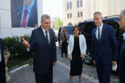 Gaziantep Valisi Davut Gül ve Gaziantep Büyükşehir Belediye Başkanı Fatma Şahin, Şanlıurfa’da Büyükşehir Belediye Başkanı Zeynel Abidin Beyazgül’ü ziyaret etti.